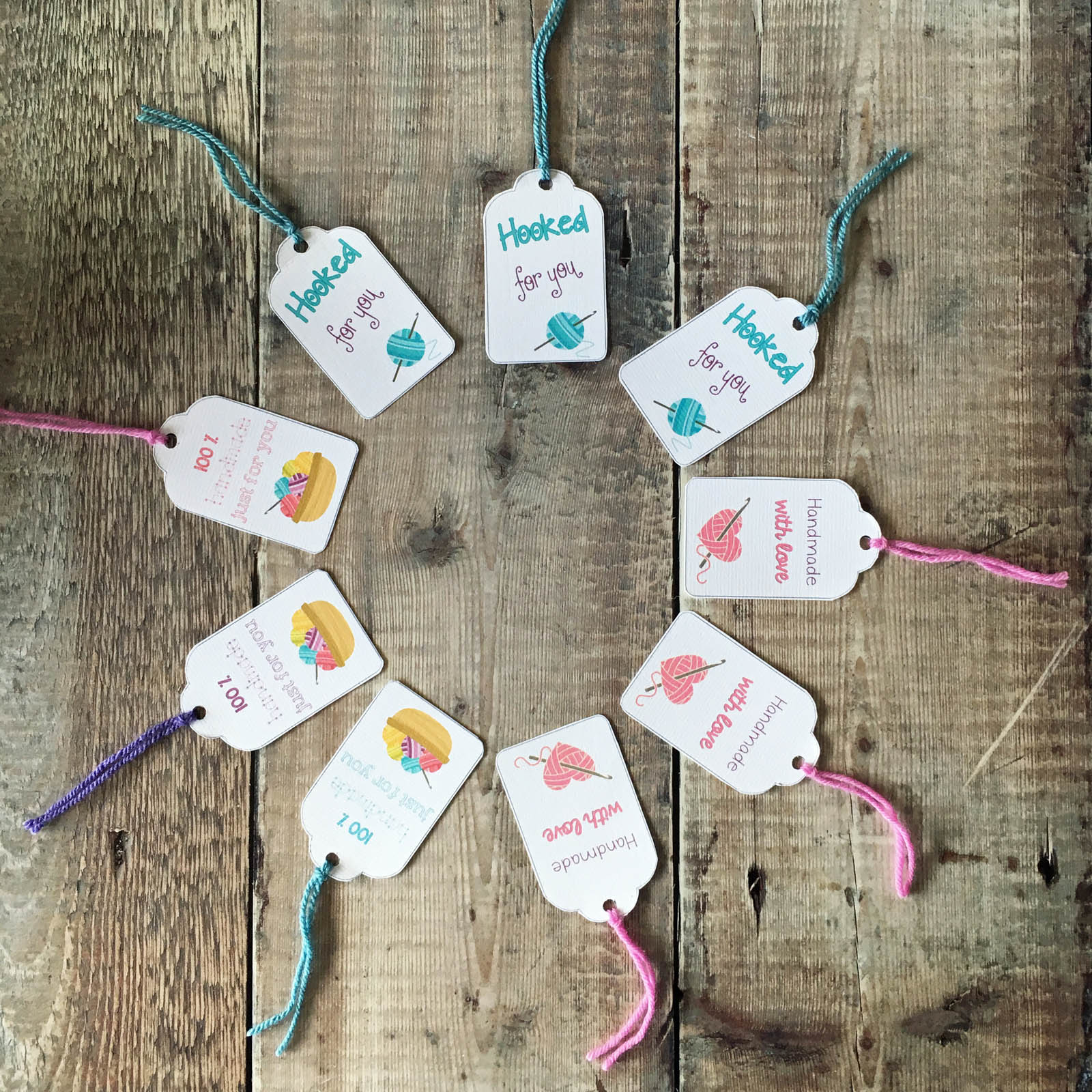 Good morning, what a lovely, sunny day it is here in Belfast. The weather has been fabulous for the last week and I am hoping it lasts for the rest of the month (and June, July & August too, but that is probably too much to wish for). Today I have a freebie for you. It is a cute set of gift tags for the crocheters among you. I was searching through some photos at the weekend and came across some crochet themed clipart I bought quite a while ago, planning to make stickers with it. I decided that I really need to be better at organising the files on my computer so I know where stuff is and it doesn’t get forgotten about and also that it was really time to put the clipart to good use. I have a few things I have crocheted to put away for birthday gifts so I thought it would be a good idea to make some tags to go with them. I had so much fun playing around with the graphics and trying to come up with suitable messages to go with them. I really need to do this kind of thing more often because I love working with graphics and designing things.