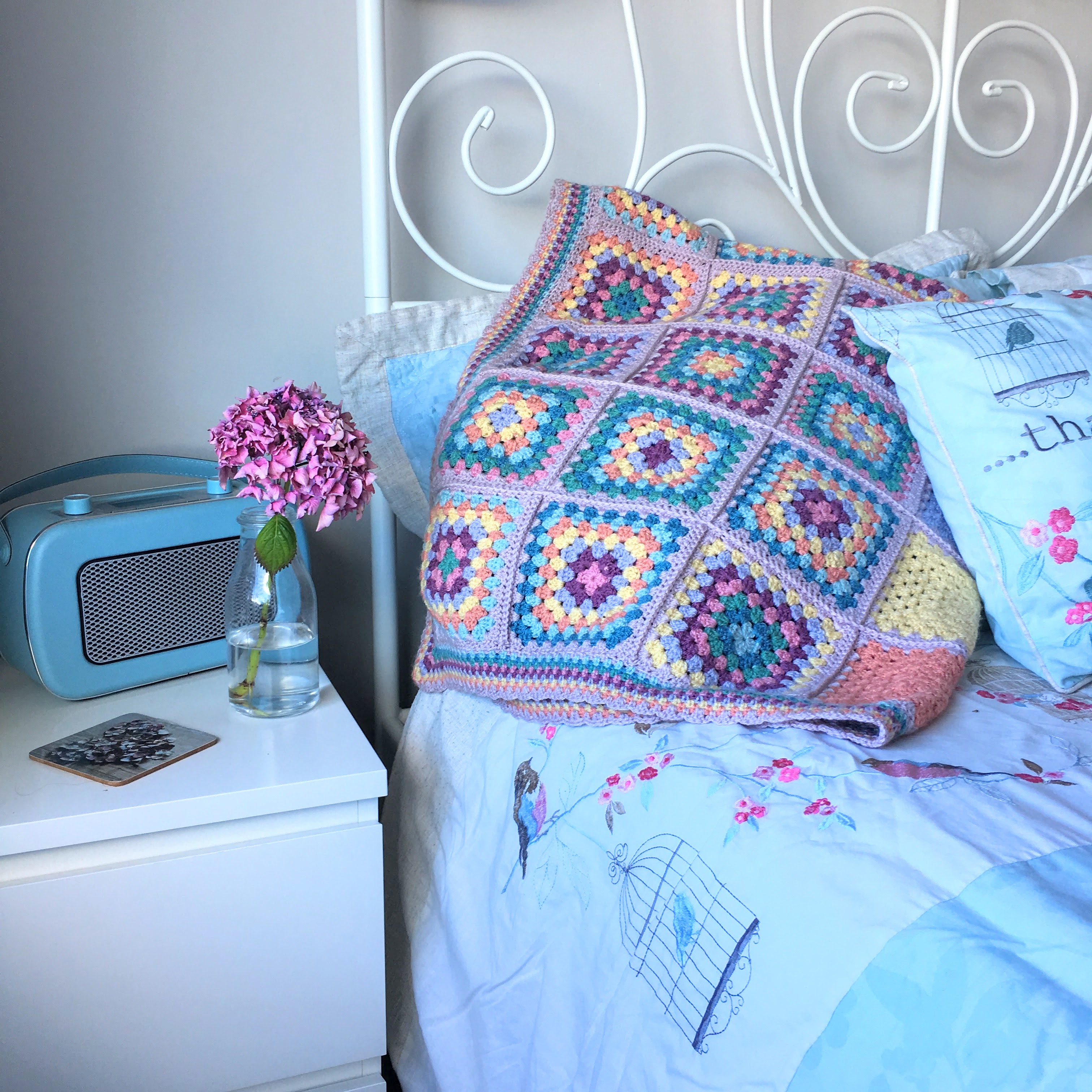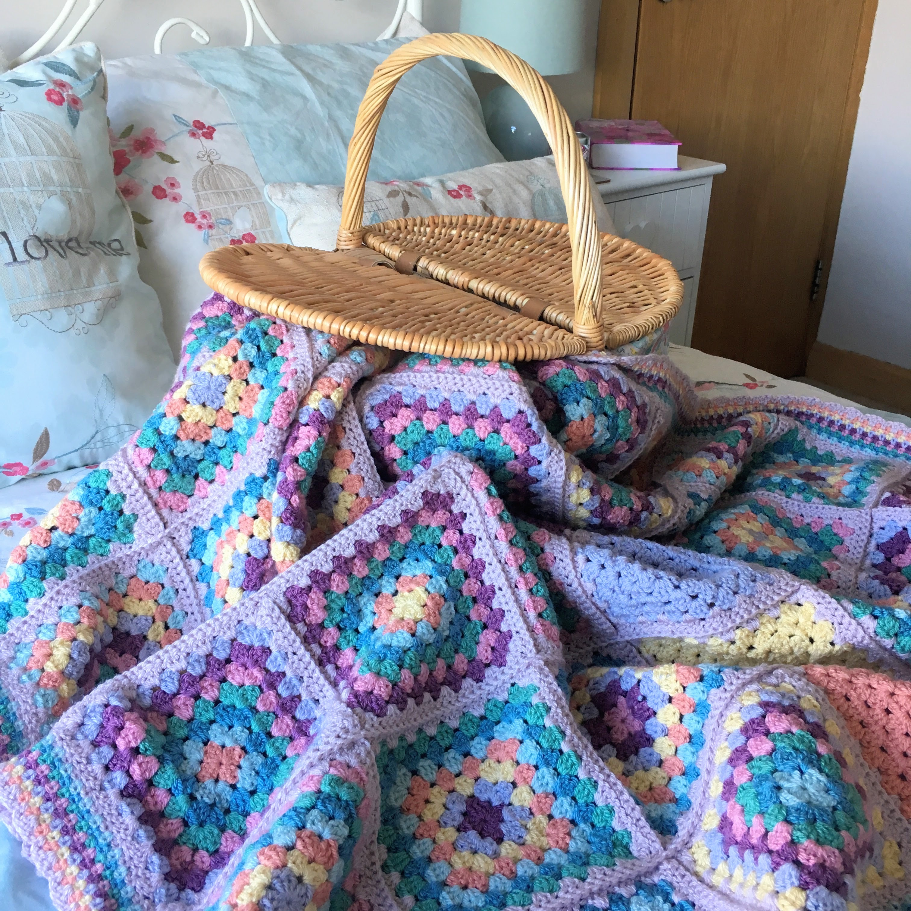 The Granny Square pattern we used was from a tutorial on The Patchwork Heart blog. Her instructions are easy to follow and there are detailed pictures to help every step of the way. We decided to add in some solid blocks of colour. We haven’t really used them in a blanket before but thought it would help bring the colours out. For joining our squares we used The Patchwork Heart’s Continuous Join As You Go method. Again, there are loads of pictures on there to help you. The border uses a Linen Stitch edging which you can find on Attic24. Both The Patchwork Heart and Attic24 are fantastic resources for crocheters. They provide loads of inspiration and very detailed tutorials. We can’t thank them enough for how generous they are with their time and knowledge.
