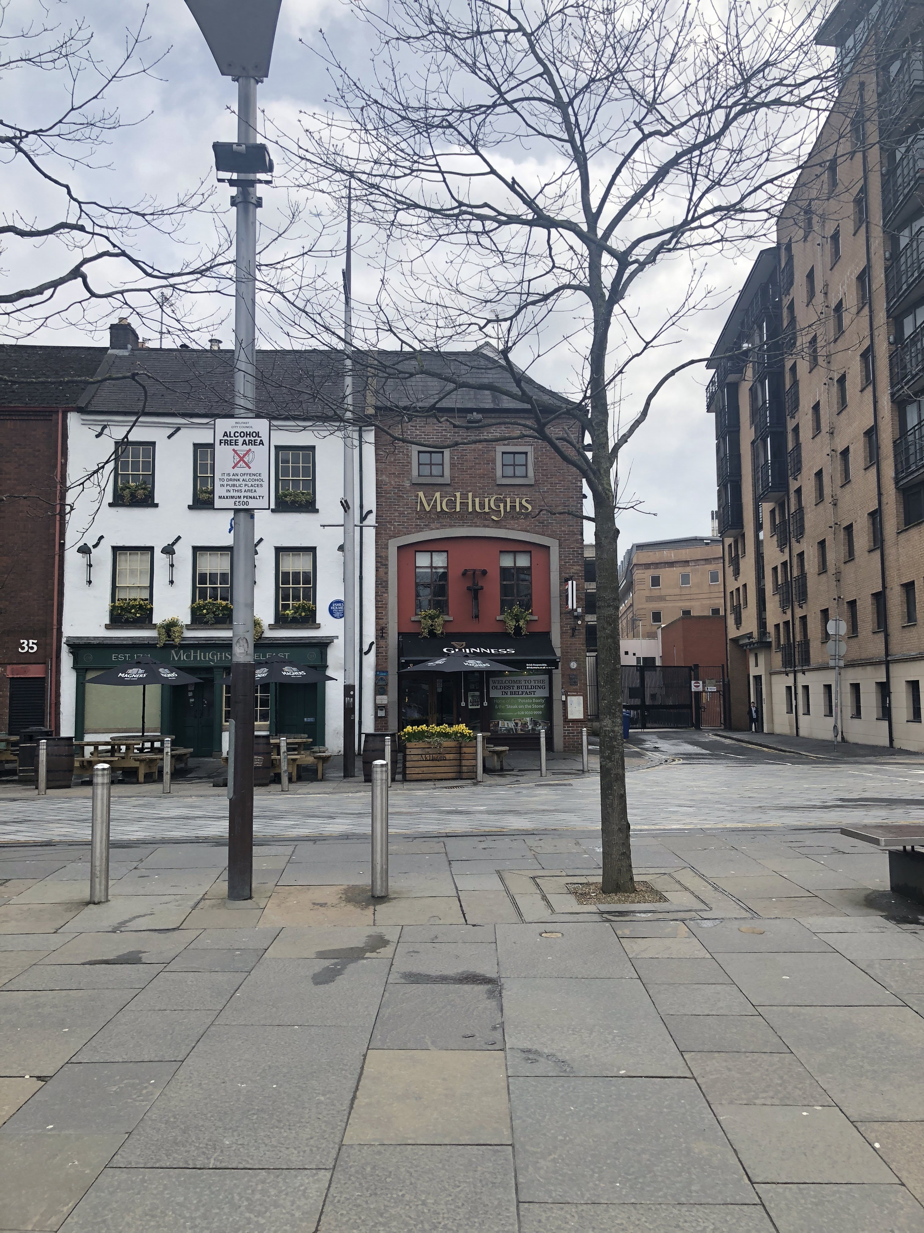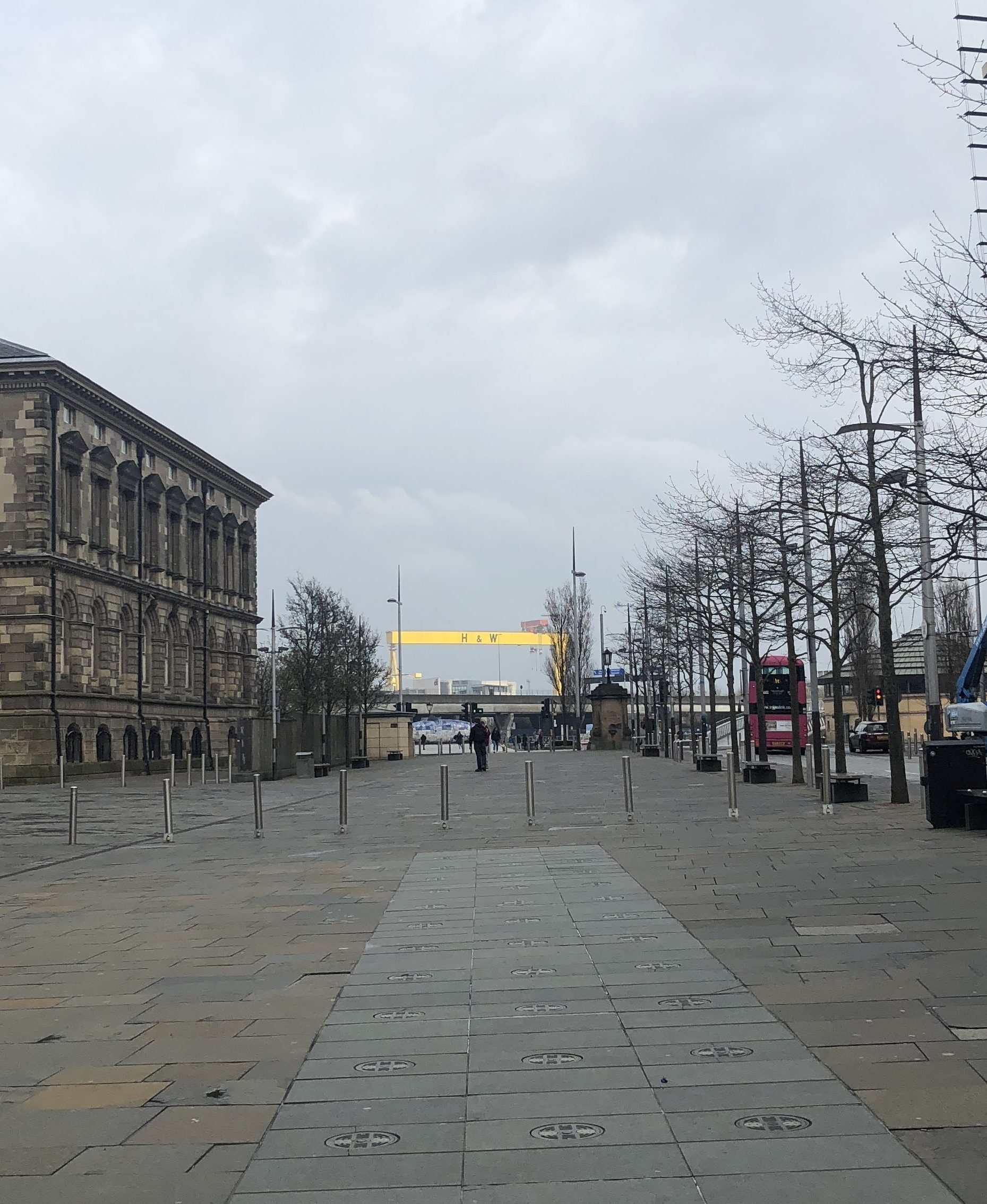 From here we crossed over to Custom House Square and headed on towards The Albert Clock, passing one of Belfast’s oldest pubs, McHugh’s. Turning back to look across the river we had a perfect view of one of the big yellow cranes Belfast is famous for. Samson and Goliath, as the cranes are known, are located in the Harland & Wolff shipyard, where RMS Titanic was built many years earlier.
